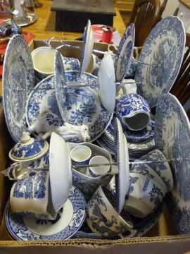 Box Containing Large Quantity of Blue & White China Ware