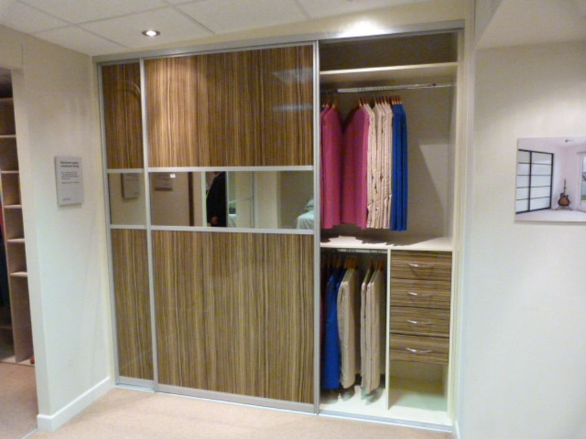 *Fitted Wardrobe Unit enclosed by Double Sliding Doors High Gloss Zebrano with Bronzed Mirrors & Silver Trim 2.4 x 2.4