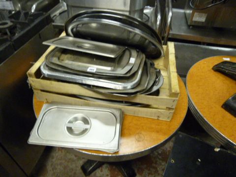 Box Containing Stainless Steel Oval Platters - Carvery Trays etc