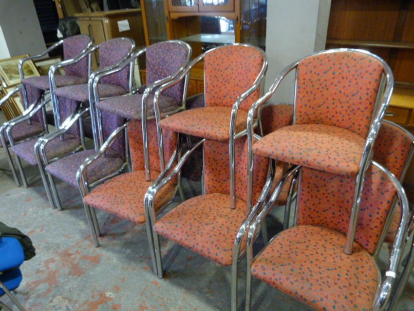 25 Tubular Chrome Framed Dining Chairs with Upholstered Seats & Back in Pink & Purple