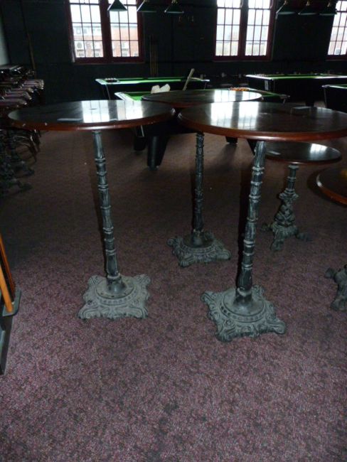 *3 Circular Poser Tables on Cast Iron Bases with Hard Wood Tops