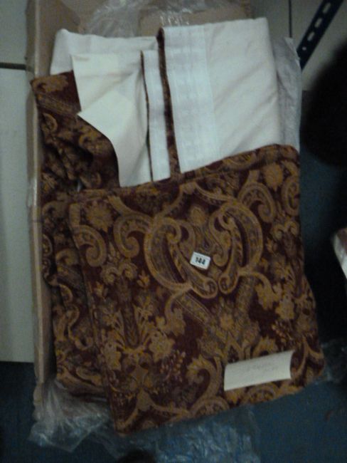 *Pair of Ready Made Curtains & 2 Cushion Covers in Traditional Gold & Burgundy Design