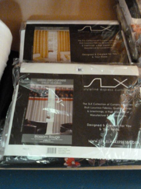 Lots Include, 300 Full and Part Rolls of Fabric, Curtain Lining, Net Curtains, Curtain Poles, Large Stock of Scatter Cushions, Cutting Tables, Fabric Racks and Display Stands, 5 Bays of Pallet Racking and 12 Bays of Medium Duty Shelving, Light Oak Reception Desk and Office Furniture, Desk Top PCs, Chairs and Filing Units, Stock of Current Fabric Samples, Warehouse Steps, Industrial Barrows, Etc….