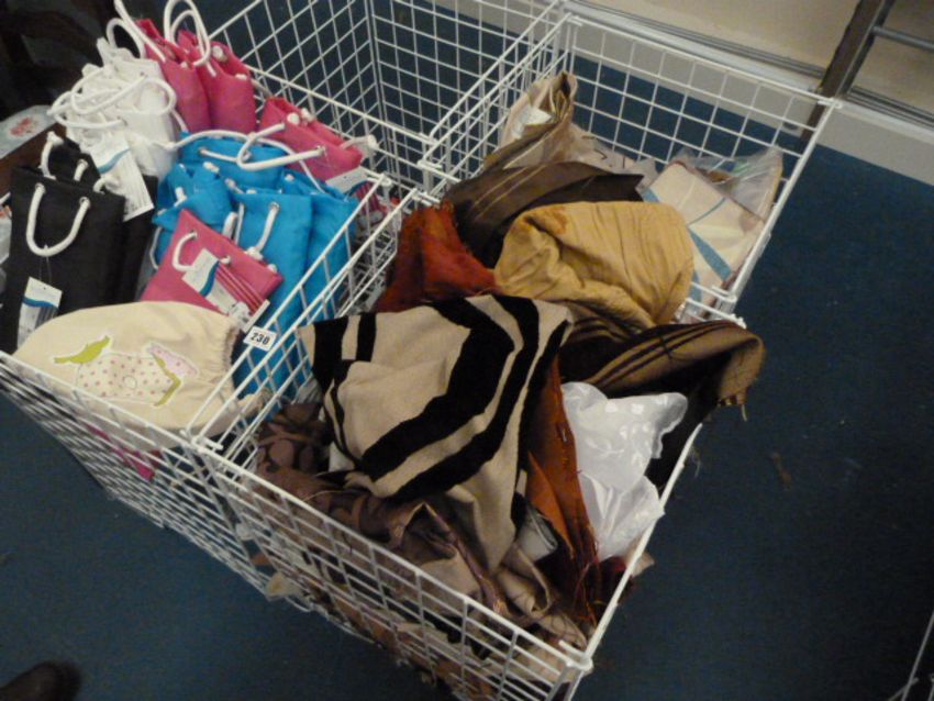 *4 Small Wire Dump Baskets containing Shower Curtain Fabrics etc