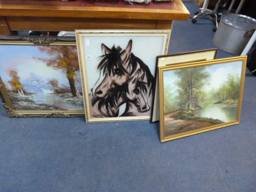 1970's Glass Horse Picture - Oil on Canvas Depicting a Country Scene etc