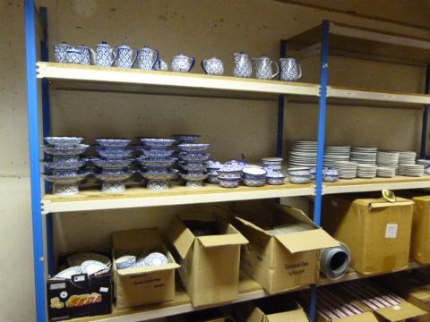 Large Quantity of Blue & White Restaurant Quality Dinnerware Suitable for Oriental or Thai Dining