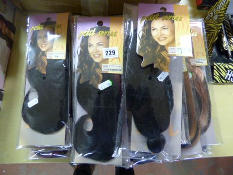 Lots Include, 100 lots of Hair Pieces and Wigs, Make Up, Costume Jewellery, Hair Accessories, Products and Extensions, Clothing, Shop Fittings and Displays, Cash Registers, Mannequins and Heads etc…