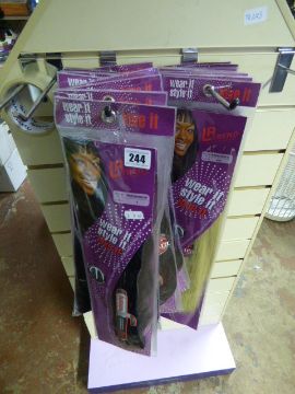 Lots Include, 100 lots of Hair Pieces and Wigs, Make Up, Costume Jewellery, Hair Accessories, Products and Extensions, Clothing, Shop Fittings and Displays, Cash Registers, Mannequins and Heads etc…