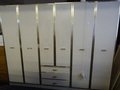 2 Cream & Gold Double Wardrobes & Another with Drawers