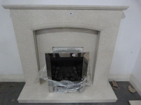 *Cream Marble Fire Place Complete with Hearth Back Plate & Mantel