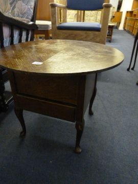 Oak Circular Sewing Table