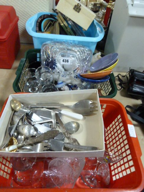 3 Boxes Containing Assorted Decorative China - Cut Glass - Cutlery - Pocket Knives etc