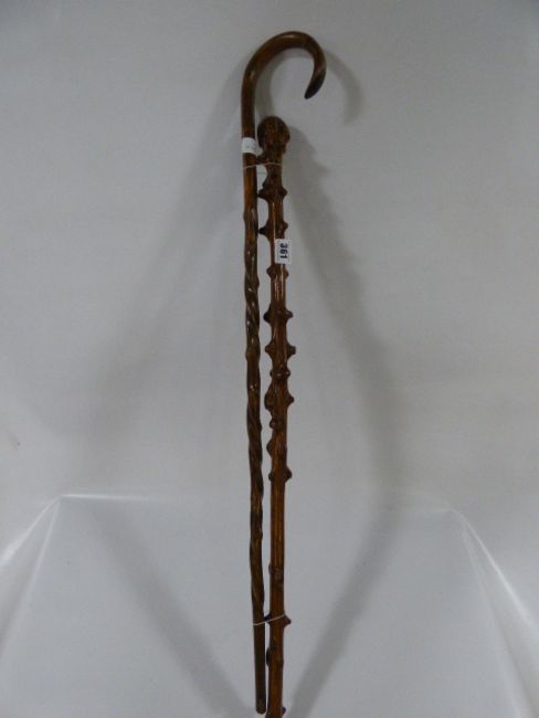 1 Twisted & 1 Knobbly Vintage Walking Stick