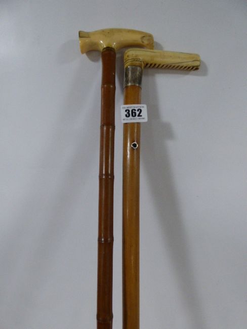 2 Ivory Handled Walking Sticks