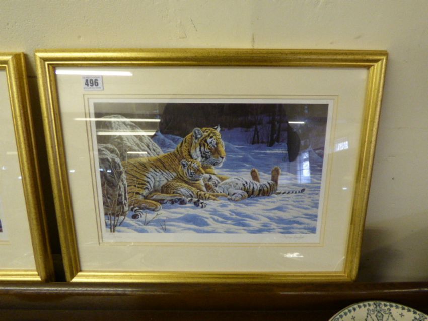 Gilt Framed Steven Gayford Print - Tigers in the Snow