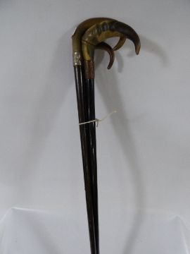 3 Horn Handled Walking Sticks