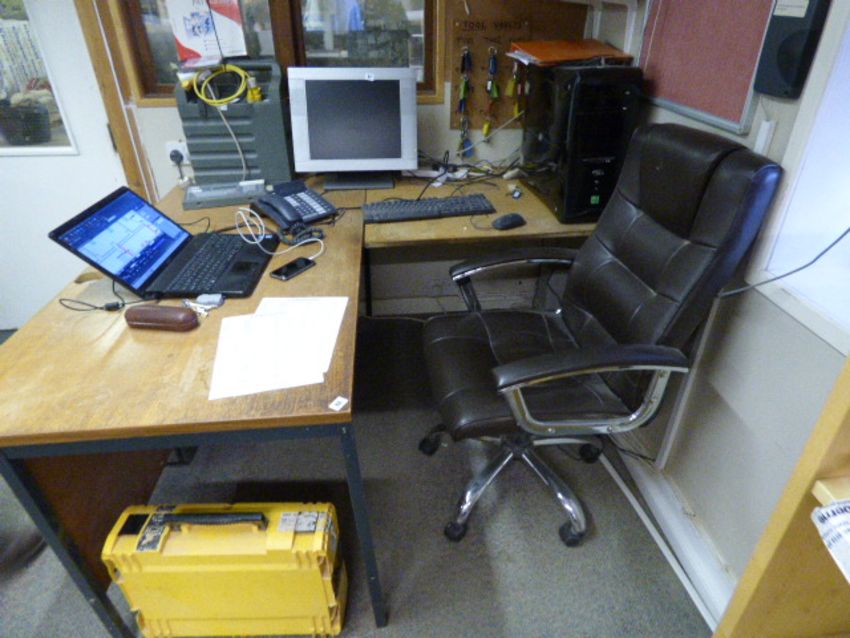 'L' Shaped Work Table with High Back Executive Swivel Chair - Brown