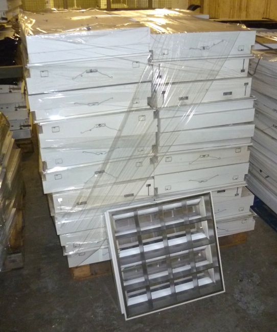 Pallet of 40 no. 600 x 600 suspended ceiling light fittings, modular low energy