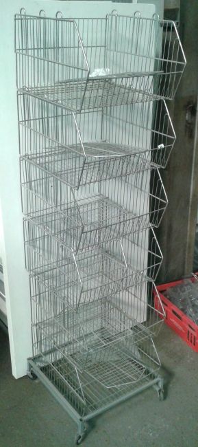 6 x 470mm wide stacking baskets + dividers on a trolley
