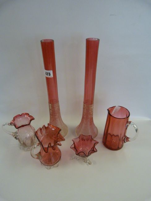 Quantity of Cranberry Ware - Jugs & Vases etc