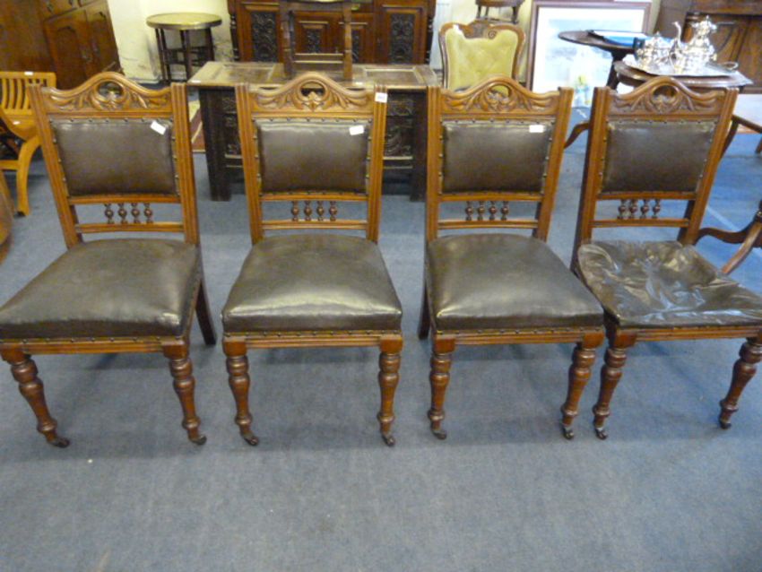 4 Upholstered Walnut Framed Dining Room Chairs