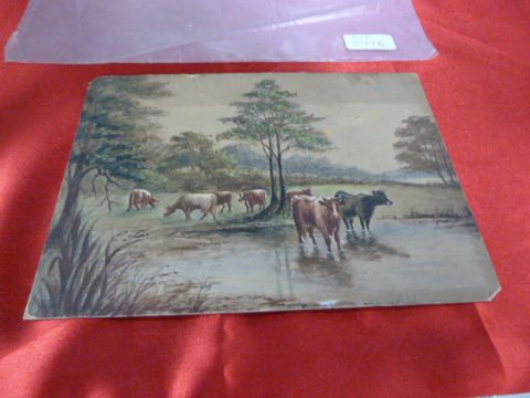 Unframed Water Colour Card J.Wainwright 1914 - Cattle At River