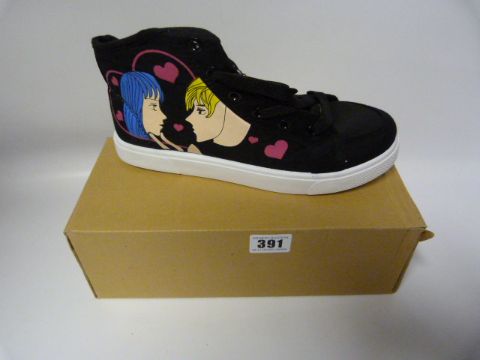 Pair of Converse Style Printed Ladies Shoes Black - Size 37