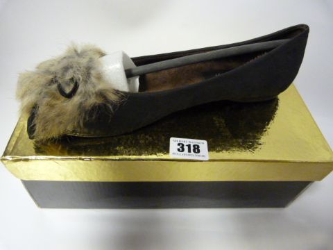 Pair of J Fashions Black Faux Leather Ladies Shoes with Rabbit Fair Detail - size 39