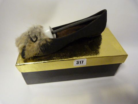 Pair of J Fashions Black Faux Leather Ladies Shoes with Rabbit Fair Detail - size 36