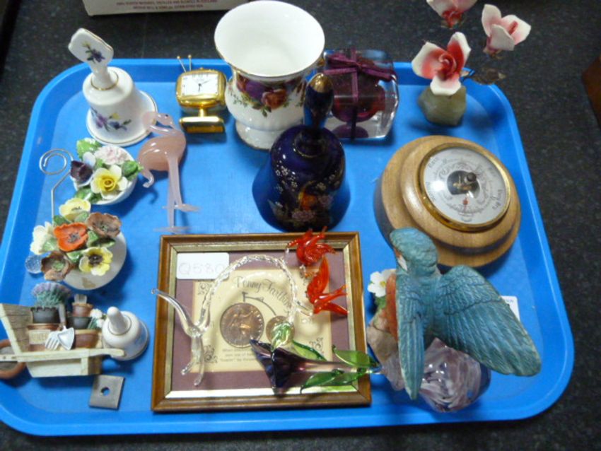 Tray Containing Wall Barometer - Small Royal Albert Vase - Glass Vases etc