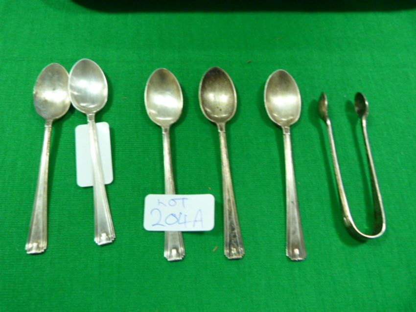 5 Silver Tea Spoons + 1 Sugar Tong