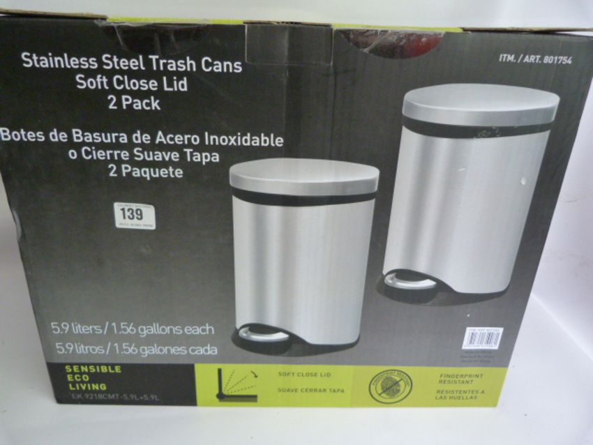 *2 Pack of Soft Close Stainless Steel Pedal Bins