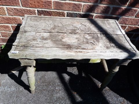 Occasional Table on Turned Legs with Carved Hunting Scene Top