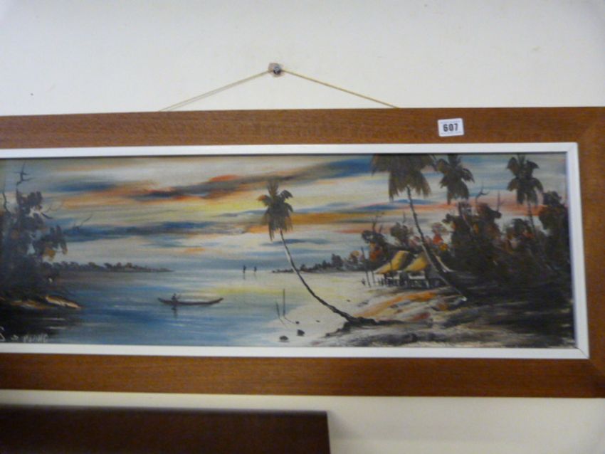 Framed Canvas Oil Painting Depicting A Beach Theme