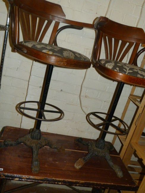 Cast Iron Rectangular Table with Hardwood Top & 2 Bar Stools