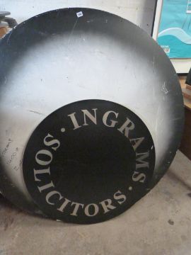 3 Circular Signs & Beech Curved Reception Counter Lot 203