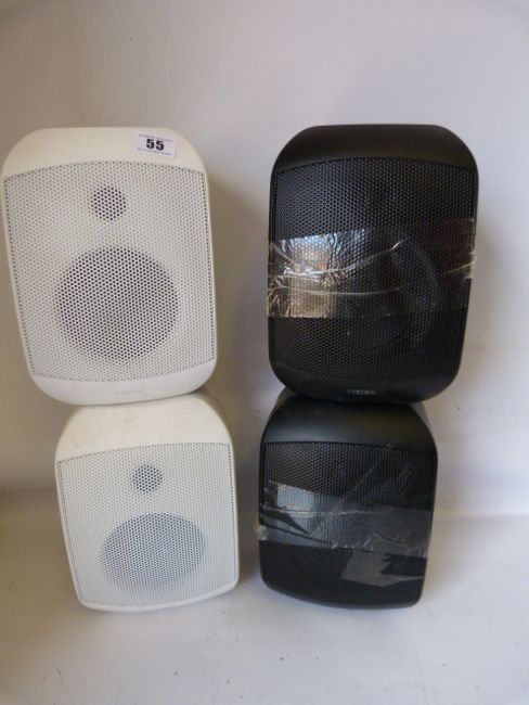 2 White and 1 Black Audio Speakers