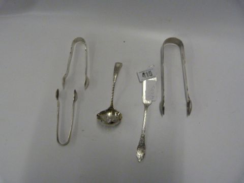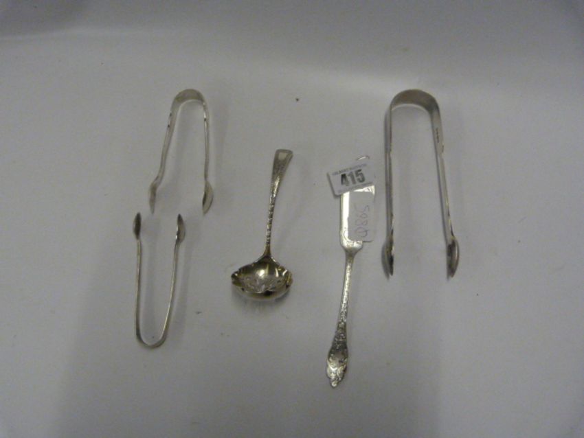 Silver Sugar Tongs - Sifter - Fish Knife Approximately 150 Grams
