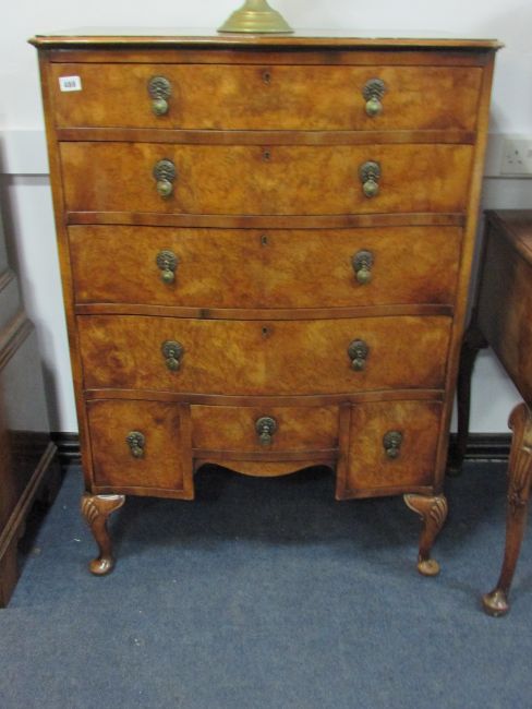 Walnut 5 Height Chest of Drawers on Cabriole Legs