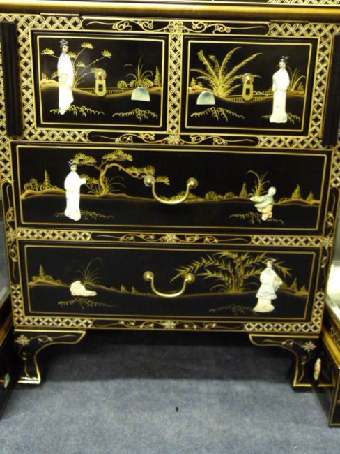 Japanese Lacquered Writing Bureau with Gilt & Mother of Pearl Decoration