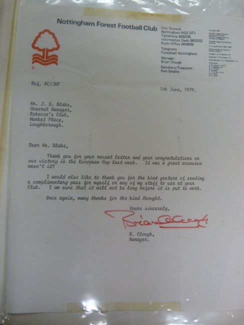 Signed Letter From Brian Clough