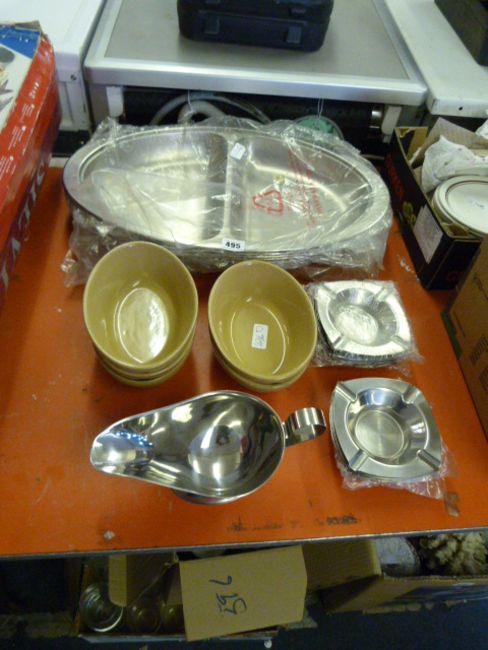Collection of Stainless Steel Platters - Ashtrays - Gravy Boat etc