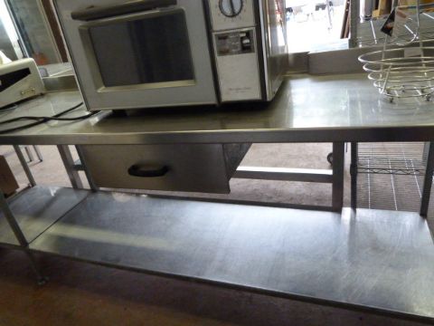Stainless Steel Shaped Preparation Table with Under Shelf & Drawer