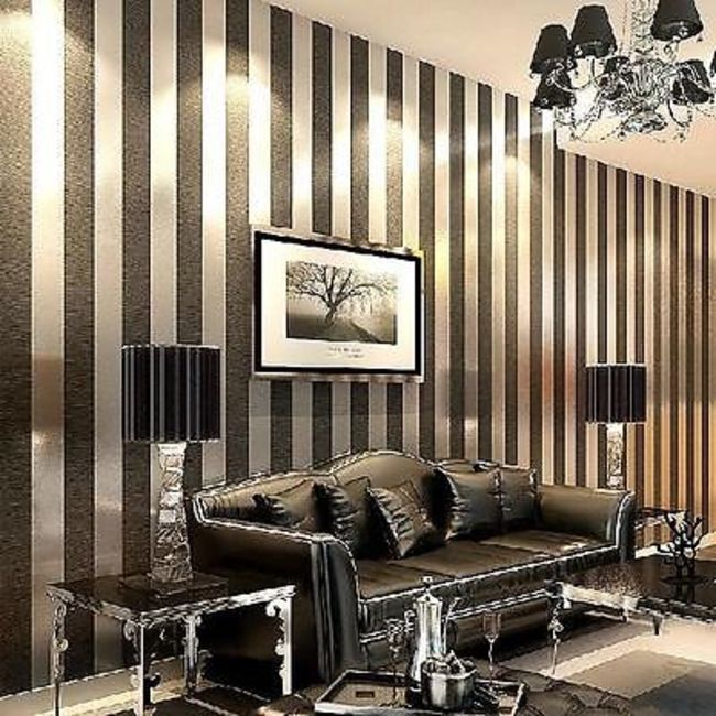 5 Rolls of Caramel Brown & Gold Striped Wall Paper