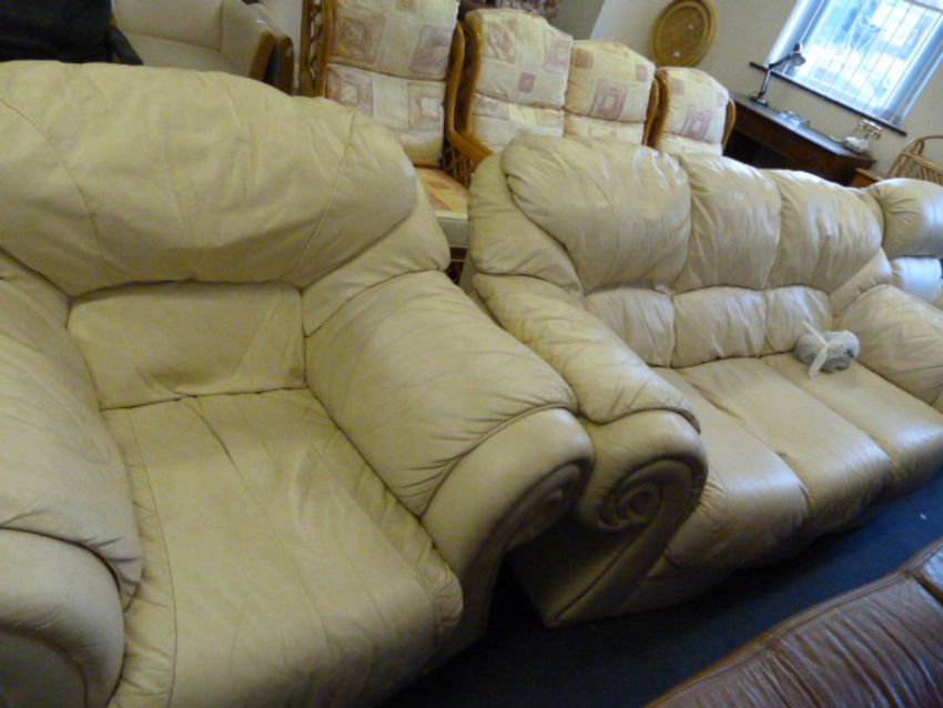 Cream Leather 3 Seat Settee & Single Chair