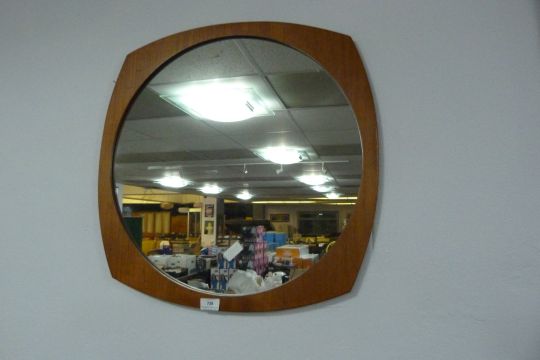 Circular Teak Framed Mirror