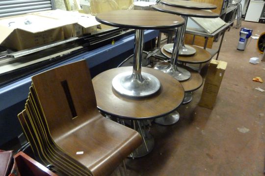 *6 Circular Tables on Chrome Pedestals & 12 Stackable Bentwood Chairs with Chrome Legs