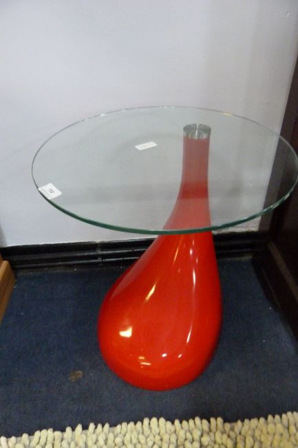 Contemporary Circular Glass Table on Red Base