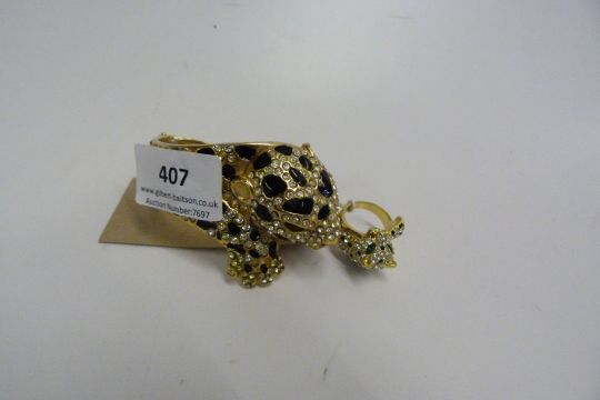 Gold Coloured Leopard Bracelet with Semi Precious Stones & Matching Ring