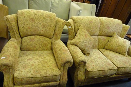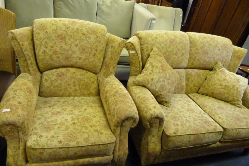 Gold Floral 2 Seat Settee with Matching Wing Back Chair